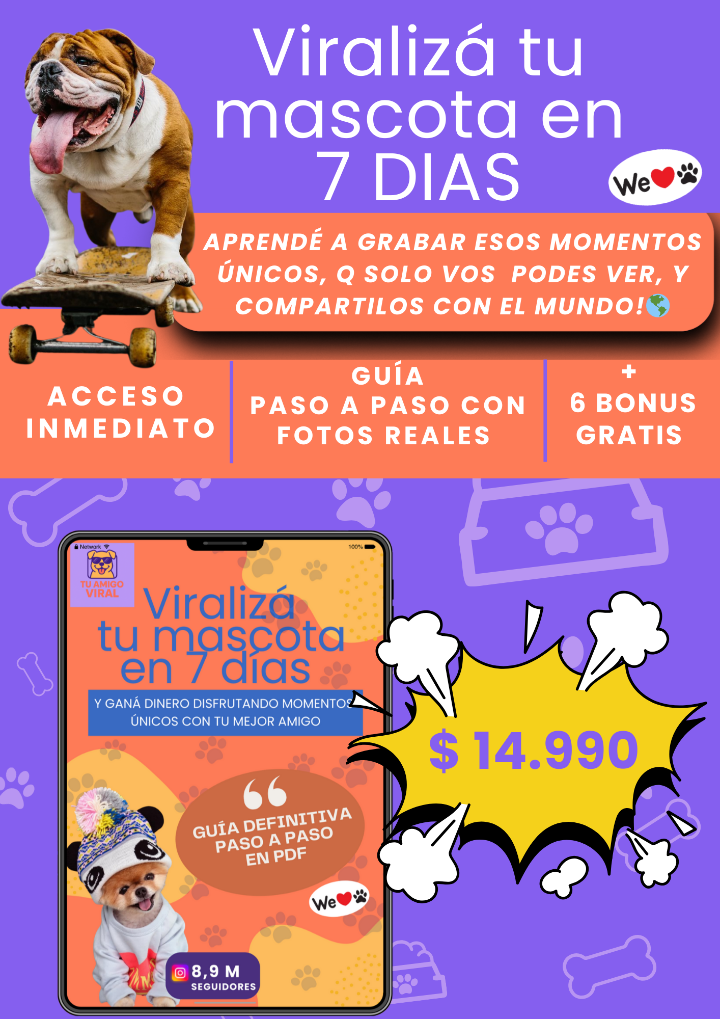 👉 Solo tu celular y tu mascota. No se requieren equipos profesionales ni conocimientos técnicos. Con lo que ya tenés podés comenzar hoy mismo.